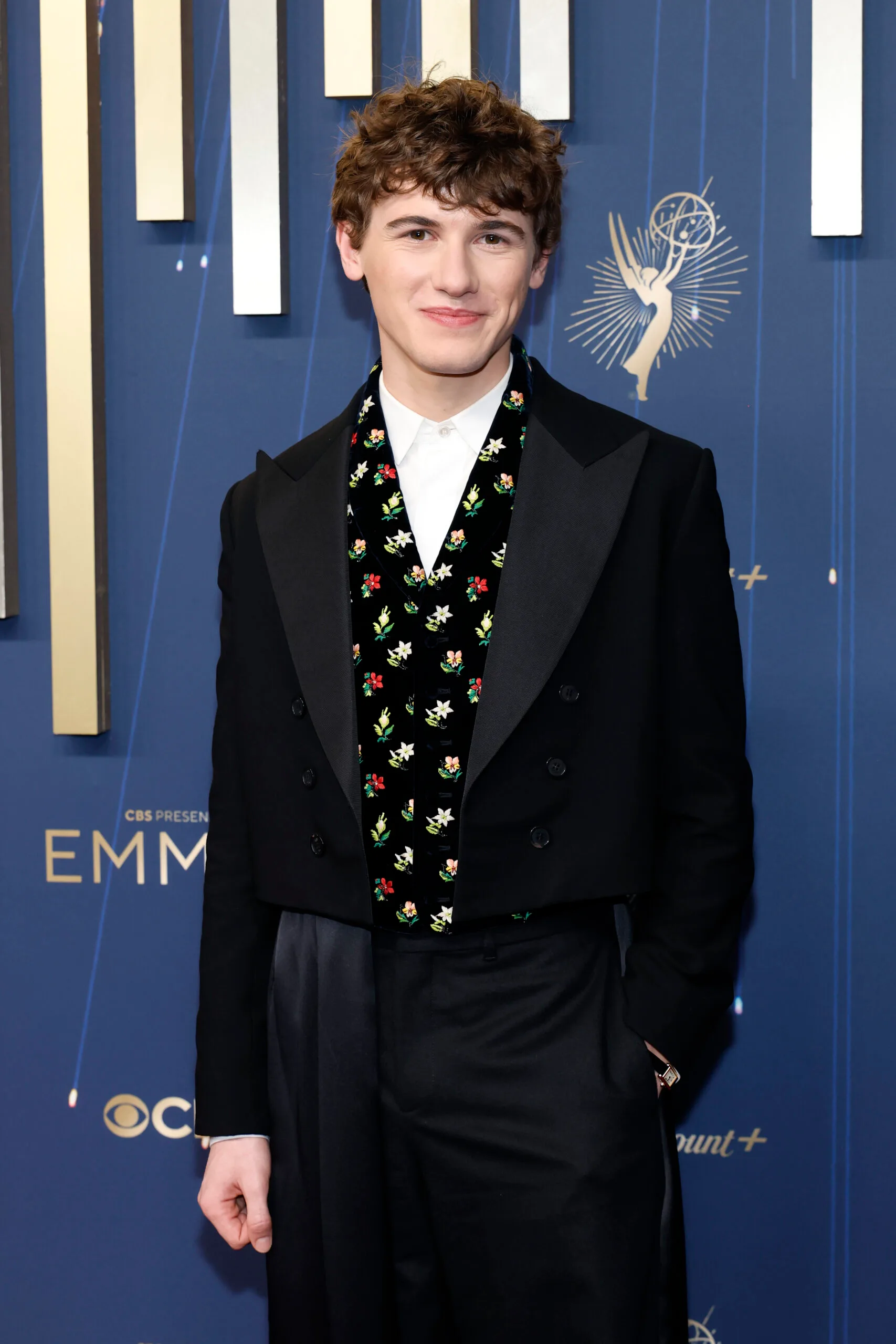 In his debut on the carpet for the nominee sweeping series The White Lotus, Sam brought a hint of whimsy to his formalwear in a Dior tux.