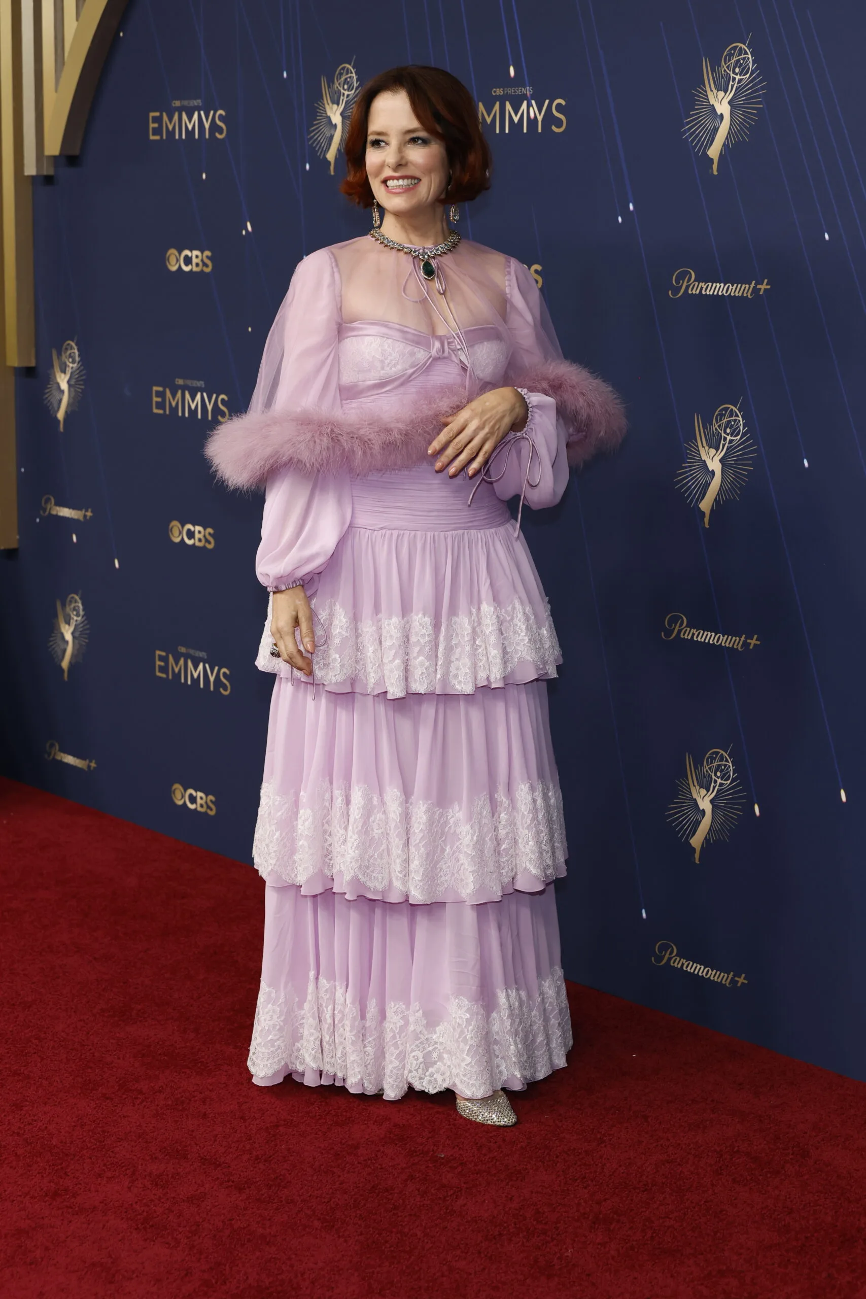 Parker Posey floated across the carpet in a lilac nightgown-inspired custom Valentino gown by Alessandro Michele, complete with lace, ruching and ribbon.