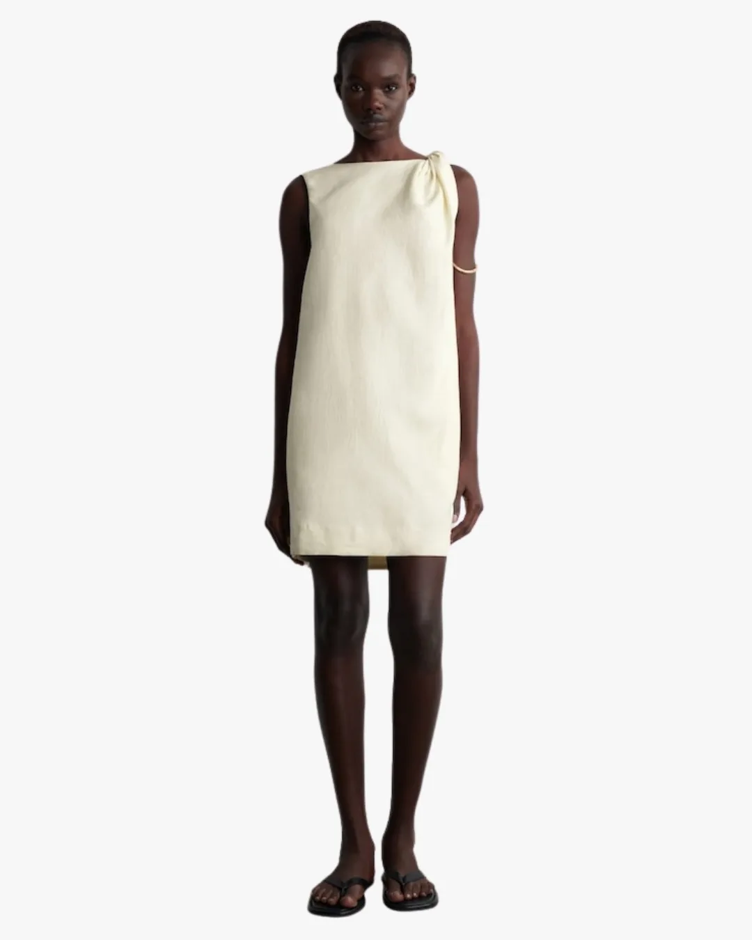 Finish with barely-there sandals or a sculptural flat to keep the look feeling effortless rather than overworked.
