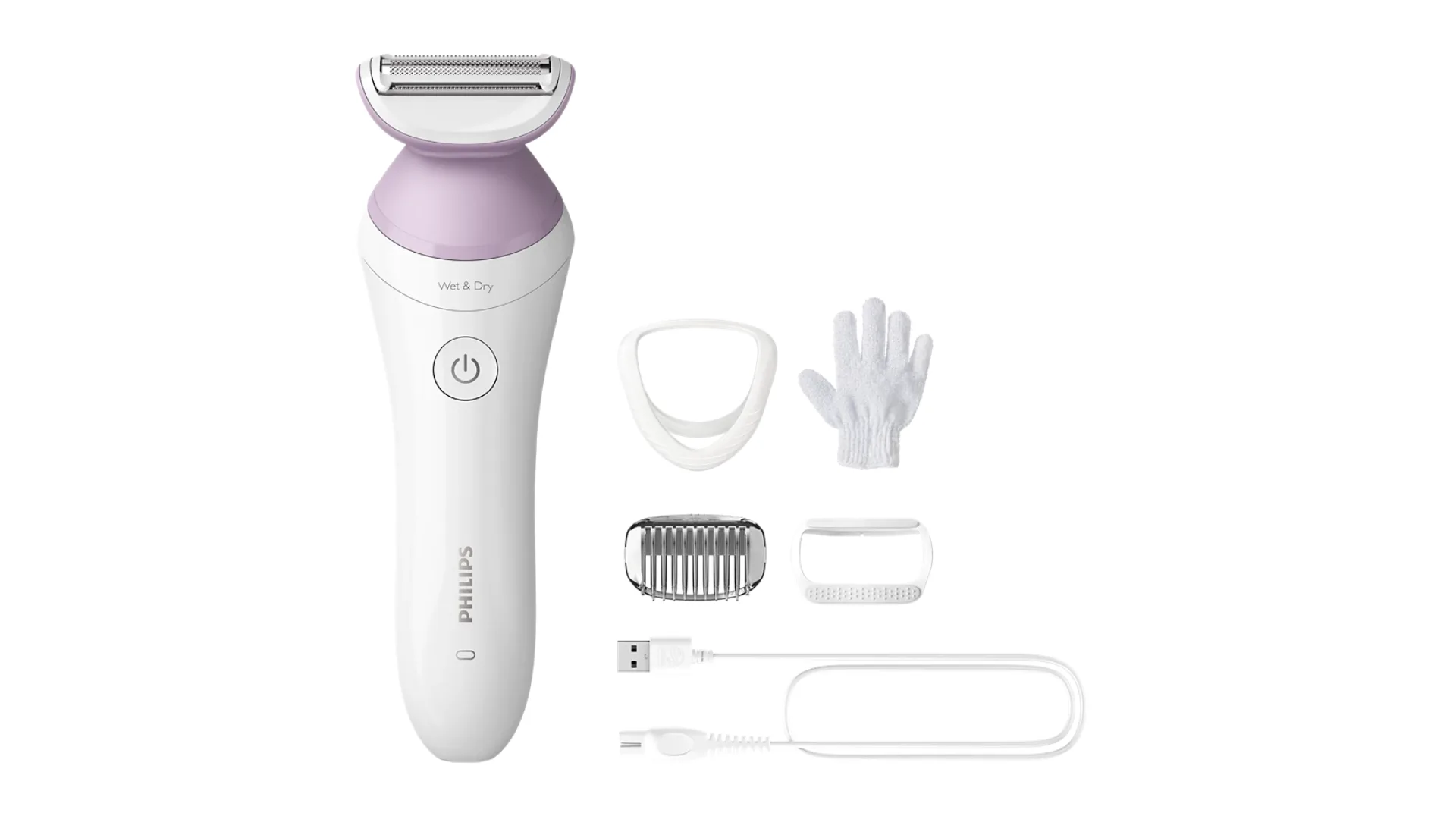 The Philips Lady Shaver is a true all-rounder. The ergonomic handle and rounder trimmer tips mean you get a smooth, gentle shave every time, while the exfoliation glove helps prevent ingrown hairs between shaving. Designed for both wet and dry use, it also includes a skin stretcher cap to tighten the skin for extra comfort. With up to 40 minutes of cordless use and USB-A charging cable, you’ll always be ready to achieve soft, silky smooth skin.