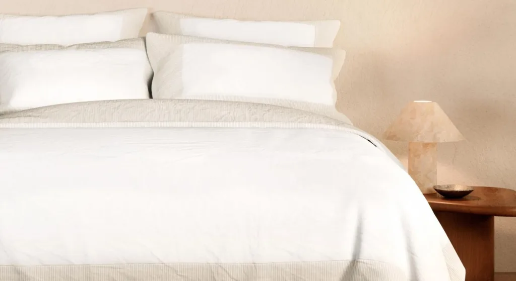 Rebecca Udall’s percale bedding is what happens when heritage craftsmanship meets obsessive attention to detail. Woven in Portugal and Italy by family-owned mills, these sheets are made from extra-long staple Supima cotton—a fibre known for its softness, strength, and breathability.