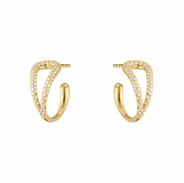 For her Mercy collection, jewellery designer Jacqueline Rabun took inspiration from the gentle flow of time and all the unpredictable twists it takes along its course. This is represented by the curving form of these 18kt gold hoop earrings, which come encrusted with a delicate trail of diamonds.