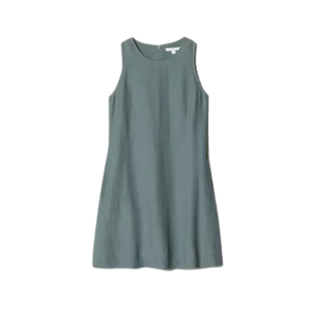 With a crew neck, straight silhouette, and convenient pockets, this elegant linen-blend dress with a soft, refined feel is perfect for effortless, polished style.