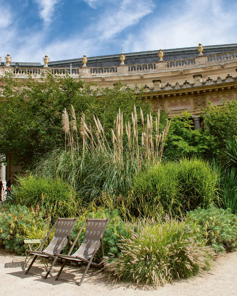 Moments from the Champs-Elysées bustle, the inner garden of the palais – where Schiaparelli shows its haute couture in fashion week – is a haven of calm. Semicircular and verdant, it nestles in a colonnaded walkway with mosaic floor. Gaze at the portico’s frescoed ceiling, and relax in a shaded deckchair.