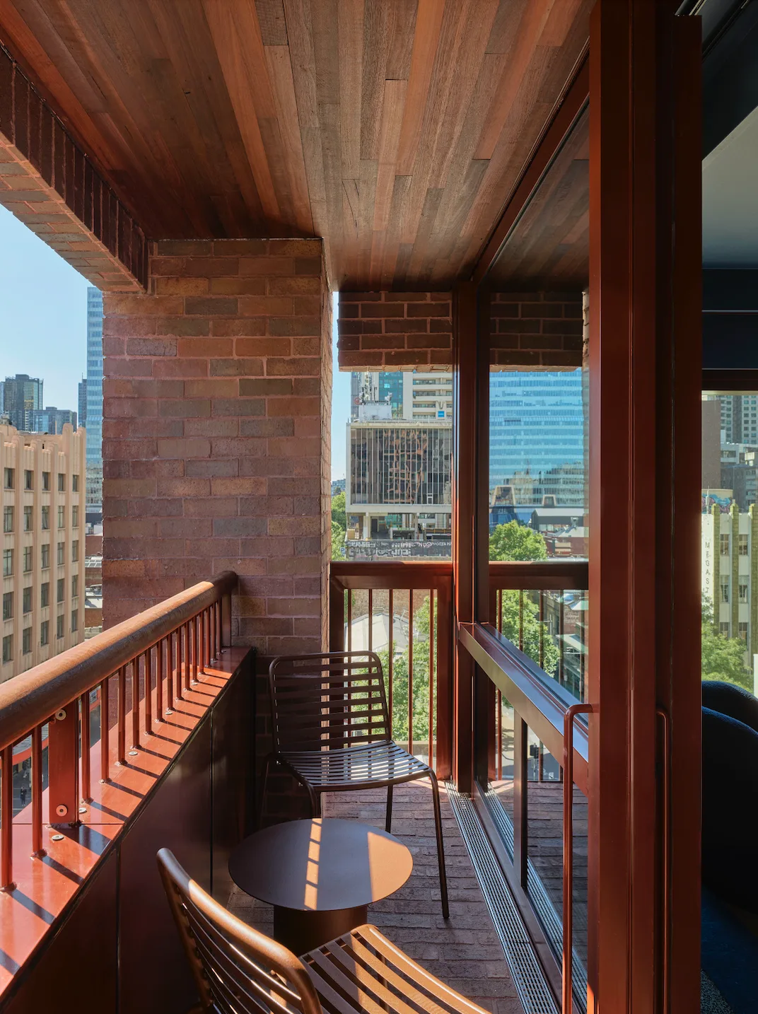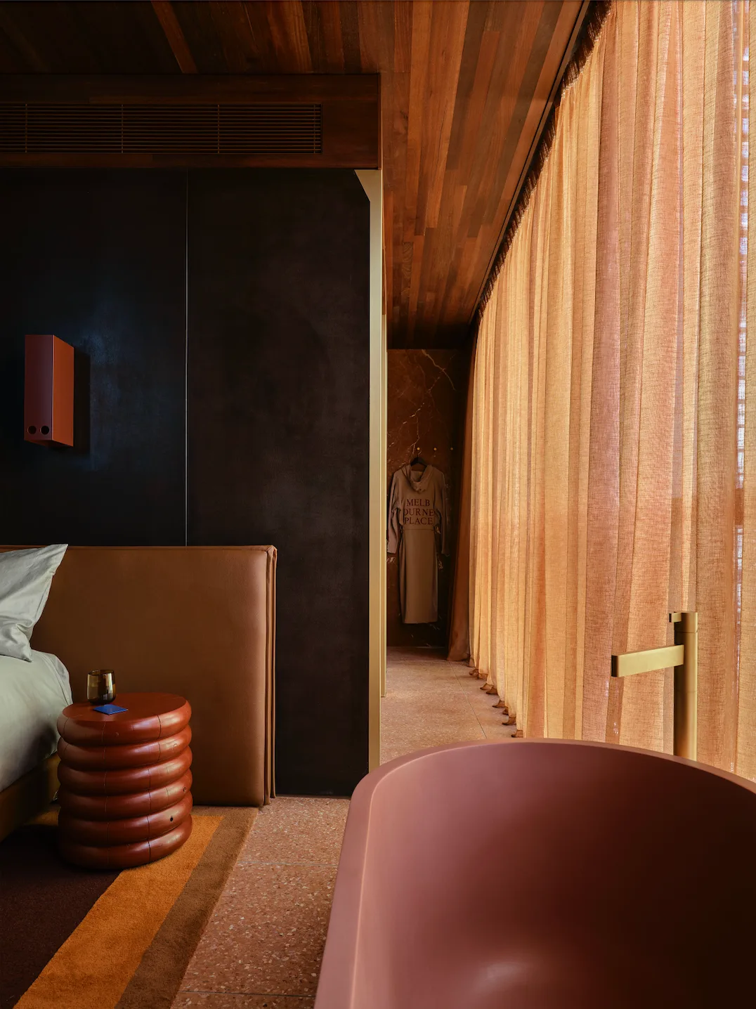 The hotel’s interiors continue this celebration of local craftsmanship, with custom furniture and fixtures designed by Australian artisans. From terrazzo tiles by Fibonacci to lighting by Volker Haug, each element contributes to a cohesive design that honours Melbourne’s creative community.