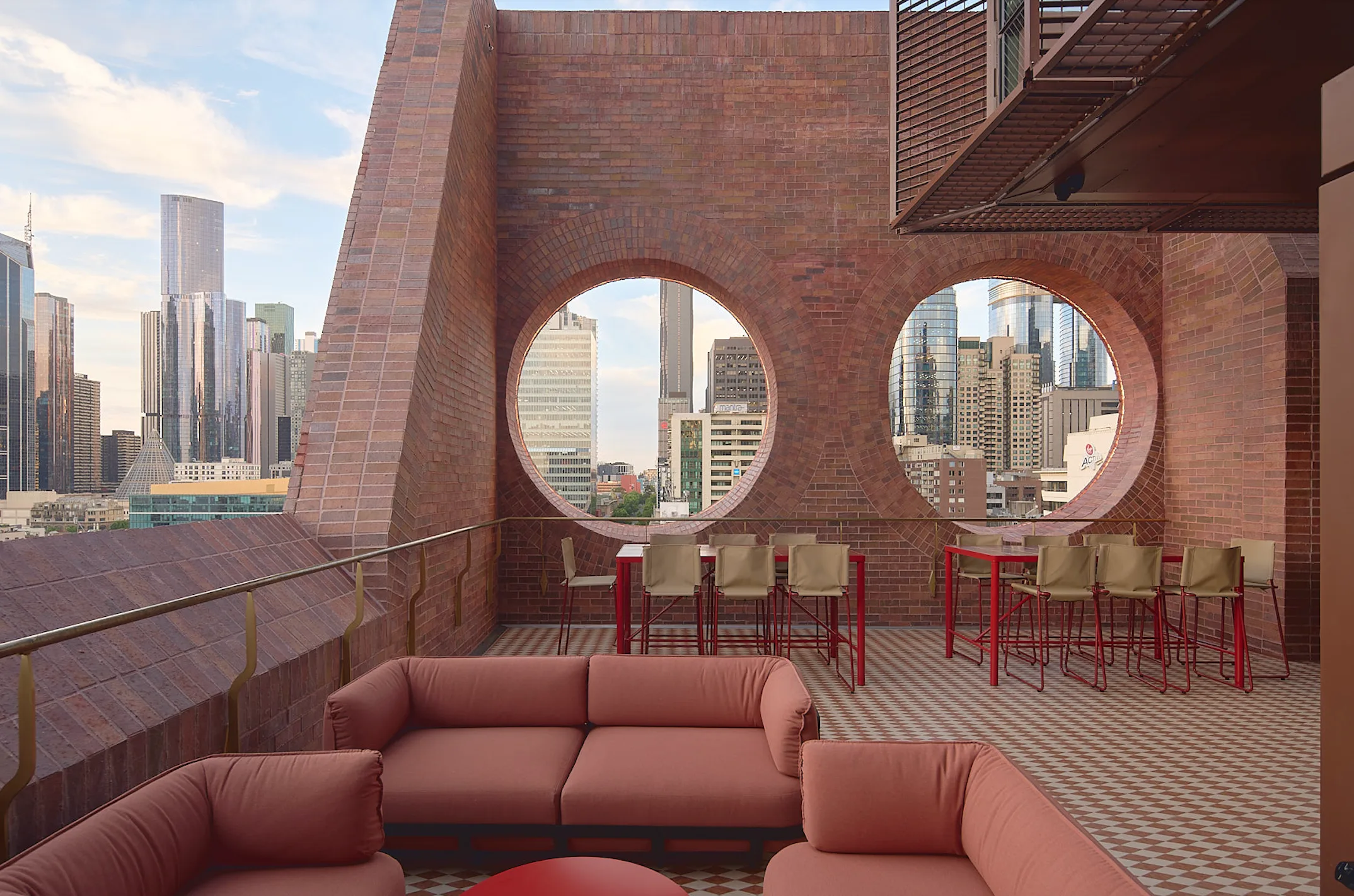 Melbourne Place, the city’s latest addition to its hospitality landscape, opened its doors last November at 130 Russell Street. Designed by local firm Kennedy Nolan, the 14-storey hotel pays homage to Melbourne’s historic architecture with its brick-and-masonry exterior, while introducing modern elements like a sculptural façade and large circular rooftop windows. The building’s design integrates traditional materials with contemporary aesthetics.